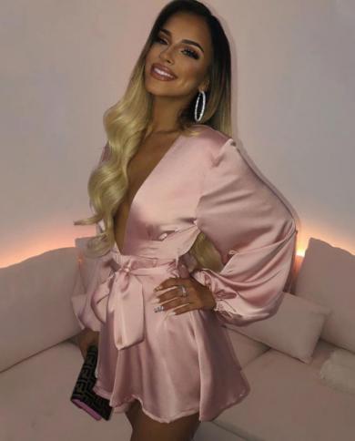 שמלת גוף עם צווארון V עמוק לנשים א>